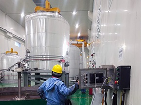 對(duì)于水解罐的清洗,需要一種洗罐徹底干凈、省時(shí)省力,消除質(zhì)量隱患和安全隱患的水解罐自動(dòng)洗罐裝置及洗罐方法。采用三維立體高壓水清洗技術(shù),清洗時(shí)伸縮機(jī)構(gòu)將三維洗罐器送入罐內(nèi),由高壓柱塞泵產(chǎn)出高壓水,通過(guò)高壓中央管路給三維清洗頭供水、驅(qū)動(dòng)三維清洗頭噴射高壓水,從而達(dá)到對(duì)水解罐整個(gè)內(nèi)壁徹底清洗干凈的目的。[查看詳情]
