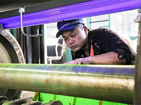 隨著市場(chǎng)對(duì)熱鍍鋅產(chǎn)品品質(zhì)的要求越來越高,光整機(jī)的日常維護(hù)變得至關(guān)重要,在光整機(jī)工作中,不僅需要及時(shí)調(diào)整因震動(dòng)故障導(dǎo)致的問題,光整機(jī)工作輥輥面的清洗也值得關(guān)注,因?yàn)楣庹麢C(jī)工作一段時(shí)間后,工作輥輥面易粘附鋅粒,會(huì)在帶鋼表面產(chǎn)生很明顯的輥印, 這會(huì)嚴(yán)重影響帶鋼的表面質(zhì)量, 故須及時(shí)對(duì)工作輥輥面進(jìn)行清潔,以消除輥面粘鋅。[查看詳情]