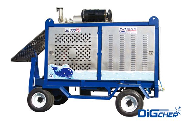 德高潔 DJ 2000/20DT 2000公斤壓力進(jìn)口柴油超高壓清洗機(jī)采用康明斯95kw柴油發(fā)動機(jī)作為動力源,高壓泵為美國原裝三柱塞泵,設(shè)計(jì)有三級進(jìn)水過濾器,并采用特種不銹鋼泵頭、不銹鋼閥門及柱塞、高技術(shù)密封填料;曲軸箱采用飛濺潤滑;設(shè)計(jì)有變頻調(diào)速系統(tǒng);配備氣動旋轉(zhuǎn)槍;安全閥采用爆破膜式,安全可靠。